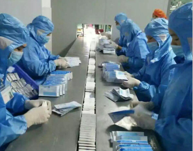 再來看我們的生產線,都是無菌消毒的生產線,整個過程中員工都是帶手套,嚴格消毒的。