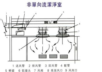 墻板或高架地板回風。氣流非直線型運動而呈不規則之亂流或渦流狀態。此型式適用于潔凈室等級